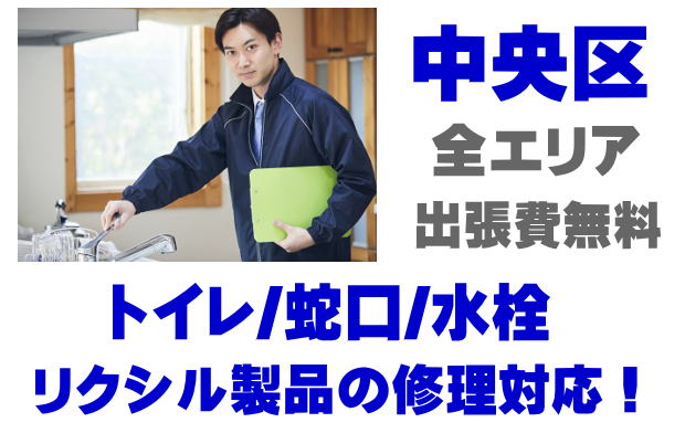 中央区でLIXIL製(旧INAX)トイレの修理業者をお探しなら当社までお気軽にお問い合わせください。蛇口の水漏れ、シャワーの故障、トイレ便器の水漏れ、タンクの故障、便座の修理などリクシル製、イナックス製に関するトラブルなら何でもご相談ください。