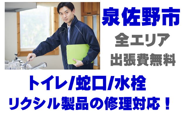 泉佐野市でLIXIL製(旧INAX)トイレの修理業者をお探しなら当社までお気軽にお問い合わせください。蛇口の水漏れ、シャワーの故障、トイレ便器の水漏れ、タンクの故障、便座の修理などリクシル製、イナックス製に関するトラブルなら何でもご相談ください。