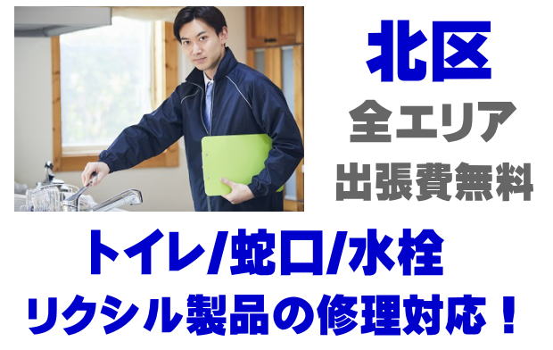北区でLIXIL製(旧INAX)トイレの修理業者をお探しなら当社までお気軽にお問い合わせください。蛇口の水漏れ、シャワーの故障、トイレ便器の水漏れ、タンクの故障、便座の修理などリクシル製、イナックス製に関するトラブルなら何でもご相談ください。