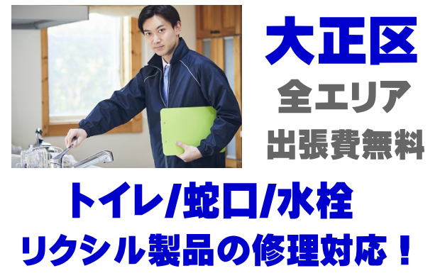 大正区でLIXIL製(旧INAX)トイレの修理業者をお探しなら当社までお気軽にお問い合わせください。蛇口の水漏れ、シャワーの故障、トイレ便器の水漏れ、タンクの故障、便座の修理などリクシル製、イナックス製に関するトラブルなら何でもご相談ください。
