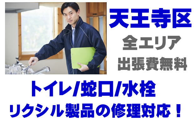 天王寺区でLIXIL製(旧INAX)トイレの修理業者をお探しなら当社までお気軽にお問い合わせください。蛇口の水漏れ、シャワーの故障、トイレ便器の水漏れ、タンクの故障、便座の修理などリクシル製、イナックス製に関するトラブルなら何でもご相談ください。